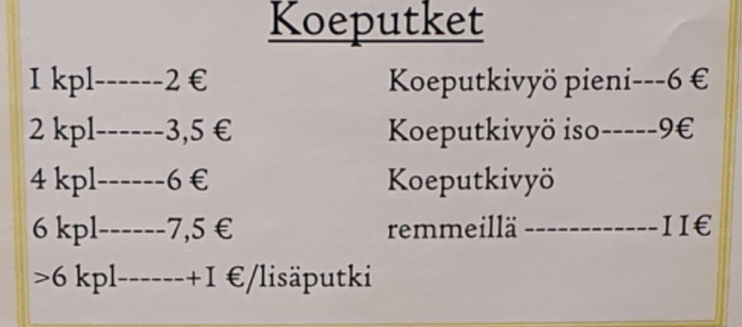 | Pinsetit | 7,5/8,5 € |
